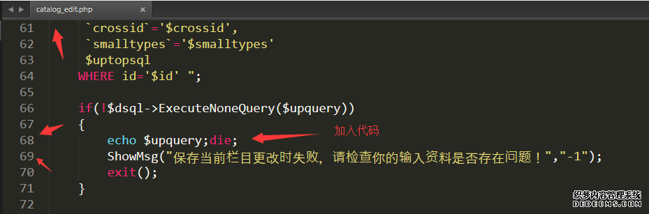 1、打开 /dede/catalog_edit.php 找到 (大概在68行左右)